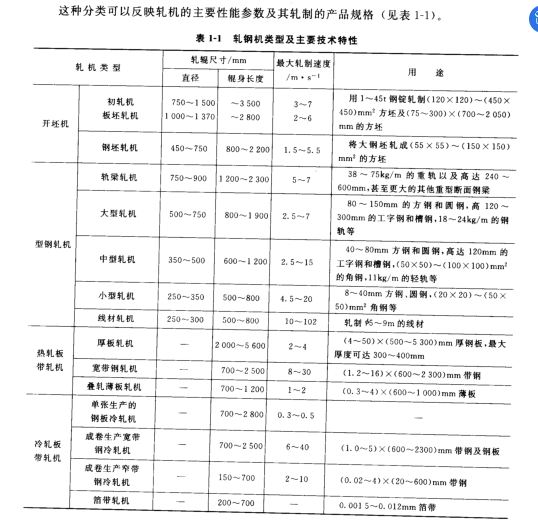 這種分類可以反映軋機(jī)的主要性能參數(shù)及其軋制的產(chǎn)品規(guī)格(見(jiàn)表1-2)